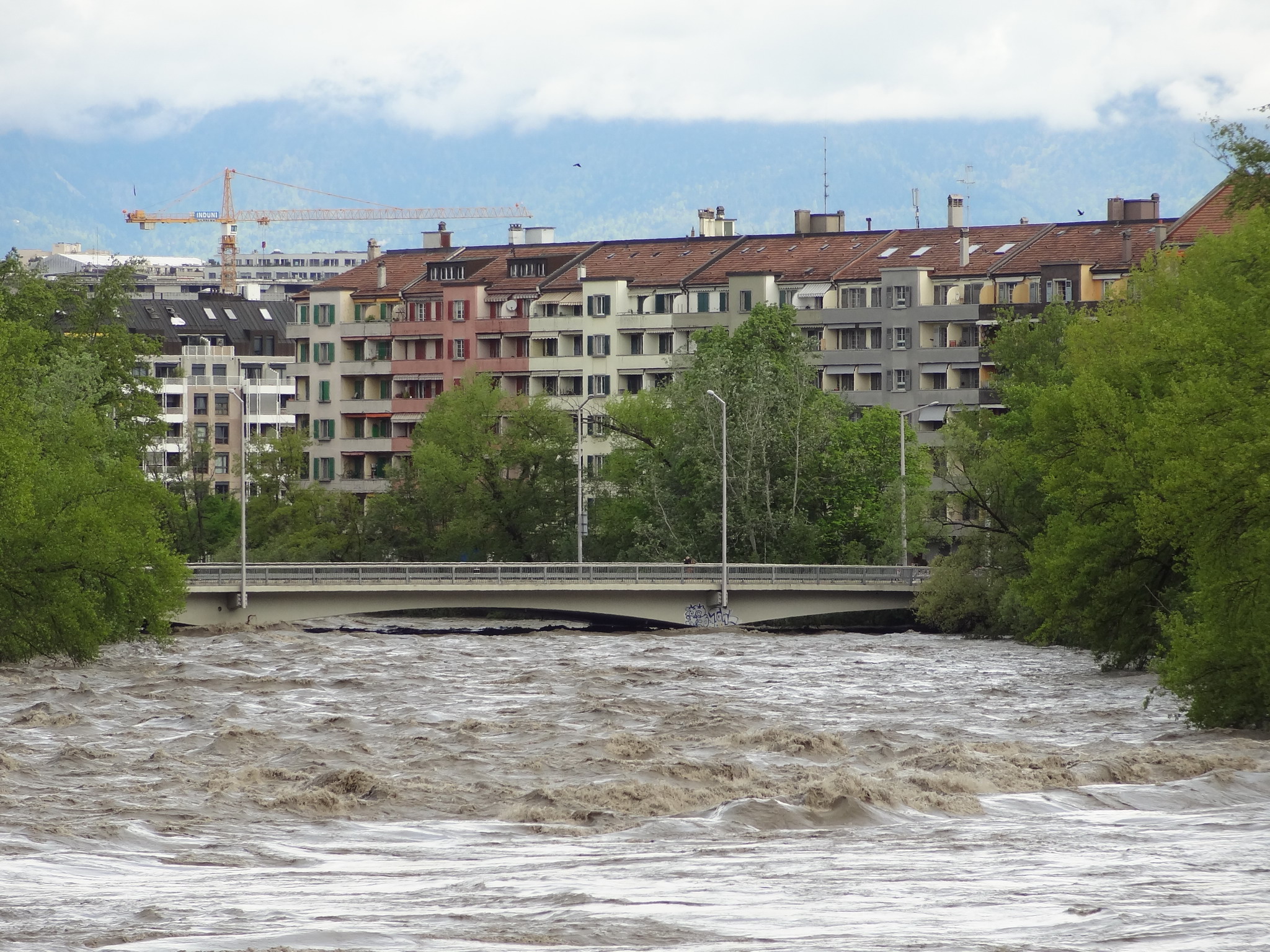 A la suite de précipitations intenses sur la Haute-Savoie, le débit de l'Arve a atteint 905 m3 par seconde au plus fort de la crue (samedi 2 mai 2015 à 9h10), alors qu'il est habituellement de 77 m3 par seconde. Conséquence : plusieurs ponts importants ont été fermés durant toute la journée. On ne déplore heureusement aucune victime, ni aucun dégât sérieux, l'Arve n'étant pas sortie de son lit. Toutefois, un débit aussi important n'avait jamais été enregistré depuis la mise en place de la station de mesure de l'Arve en 1935.