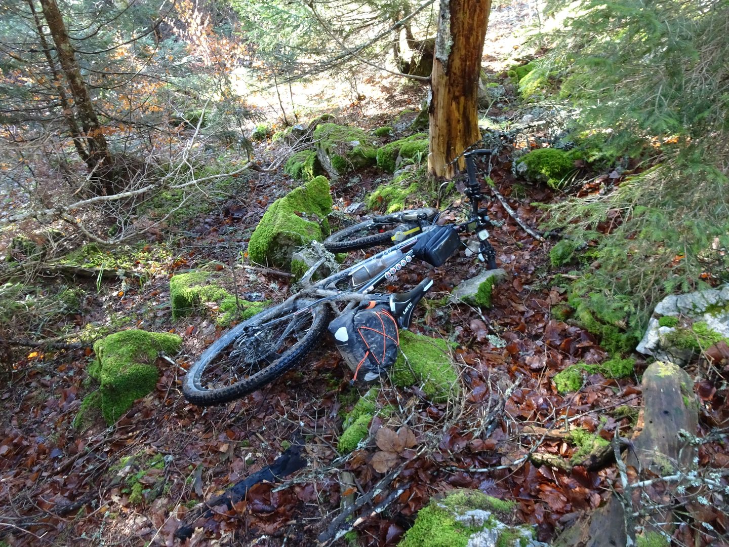 Chute de 4-5 mètres en contrebas du chemin, après une perte d'équilibre en voulant redémarrer : rien de cassé !