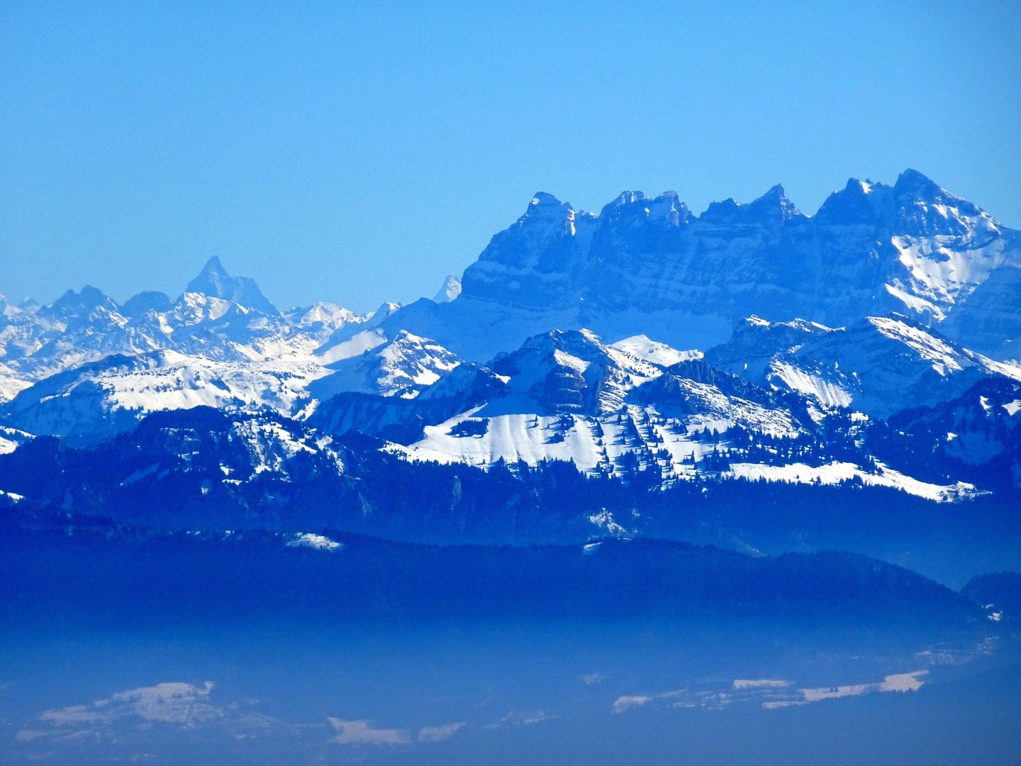 Le Cervin, la Dent d'Hérens et les Dents du Midi, depuis la Barillette